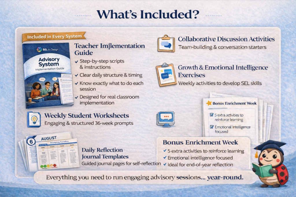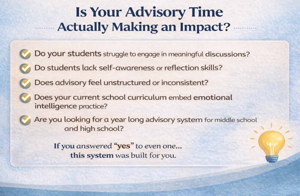 The advisory system is designed to provide educators with practical tools that support student engagement, reflection, and community building.